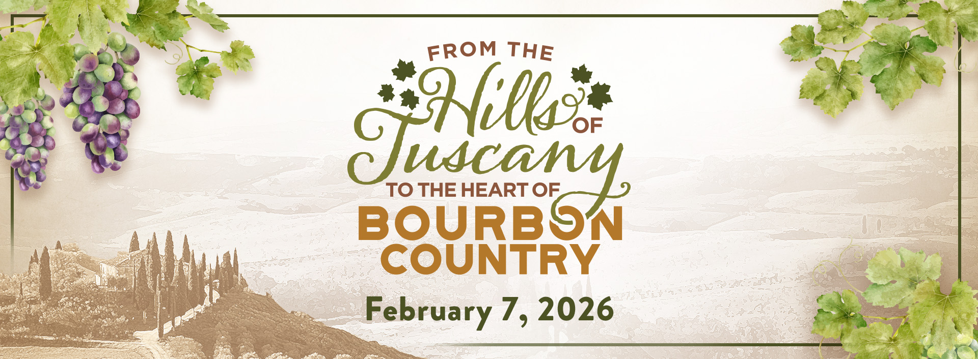 This year’s theme, From the Hills of Tuscany to the Heart of Bourbon Country, transports your senses to the heart of Italy with an elegant dining experience. Each course will be thoughtfully curated by our guest culinary artist, featuring exquisite dishes paired with hand-selected wines chosen by our distinguished sommelier, who will share the inspiration and craftsmanship behind each pairing. Activities will include a bourbon raffle, wine pull, bourbon tasting and silent auction.